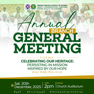 Trinity Young Adults' Fellowship (Trinity YAF) held its 1st Annual Branch General Meeting on Saturday, December 20, 2025. The meeting was chaired by President Nana Essel-Amoah, with support from Vice President Marian Afful Semordzi and Secretary Ernest Ntow. This meeting provided the fellowship with an opportunity to reflect on the past year and anticipate the one to come.